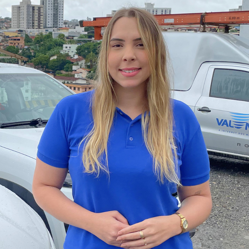 Já a nossa Técnica de Segurança do Trabalho, Camila Ferreira, aplica diariamente, para centenas de colaboradores, normas de segurança com autoridade e firmeza feminina, protegendo equipes em todas as unidades da Valenet.