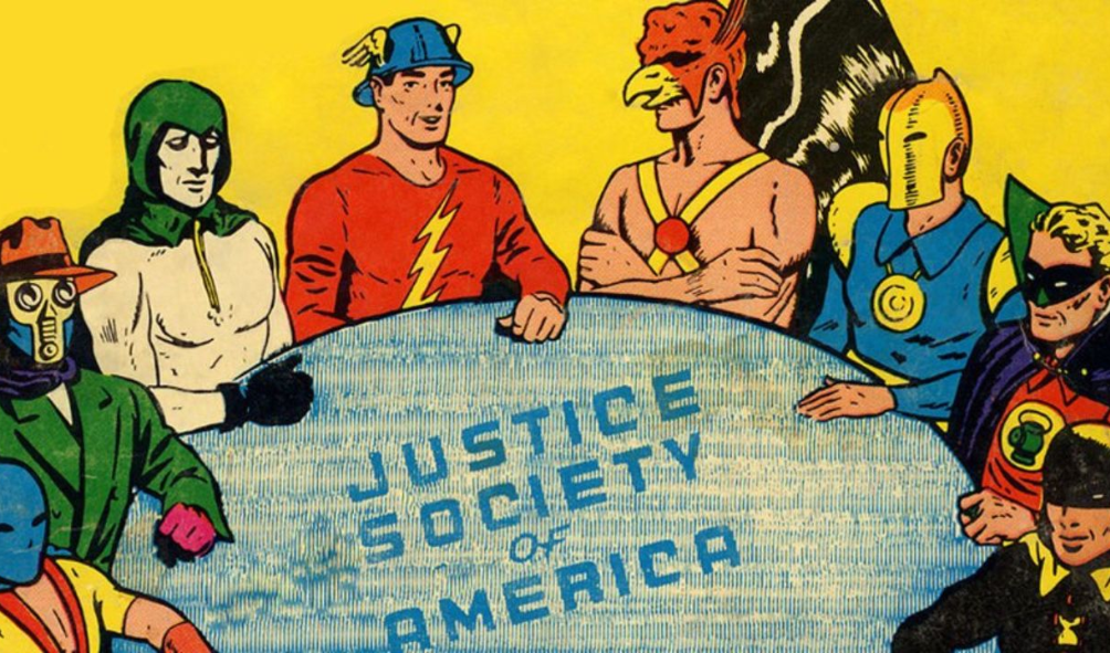 A Sociedade da Justiça foi a primeira equipe de super-heróis a aparecer nas histórias em quadrinhos da DC Comics e são considerados a “base” da Liga da Justiça. Na primeira versão, o grupo incluía o Sr. Destino, o Lanterna Verde, o Flash, o Homem-Hora, o Sandman e o Gavião Negro.